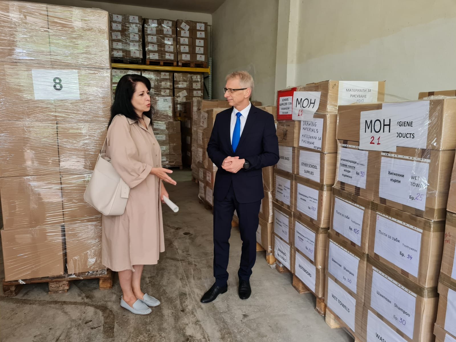 Тировете потеглиха от Националния учебно-логистичен център на БЧК в с. Лозен край София. На камионите бяха натоварени 74 палета, съдържащи кашони с продукти от първа необходимост. Допълнителни 26 палета ще бъдат качени от базата на БЧК в с. Пиргово, област Русе. Помощите включват над 250 кашона с раници и ученически пособия, близо 70 кашона с одеяла и възглавници, повече от 170 кашона със сапун, почти 160 кашона с памперси.