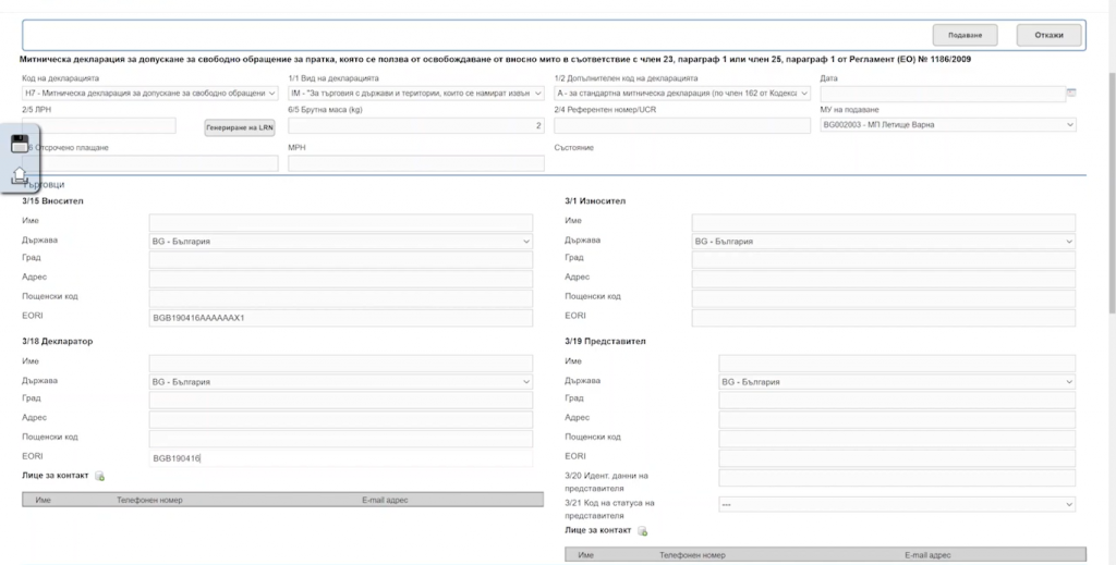 Както и стандартната митническа декларация при внос, така и новата митническата декларация с намален набор от данни ще се подава по електронен път съгласно чл. 66, ал. 2 от Закона за митниците.