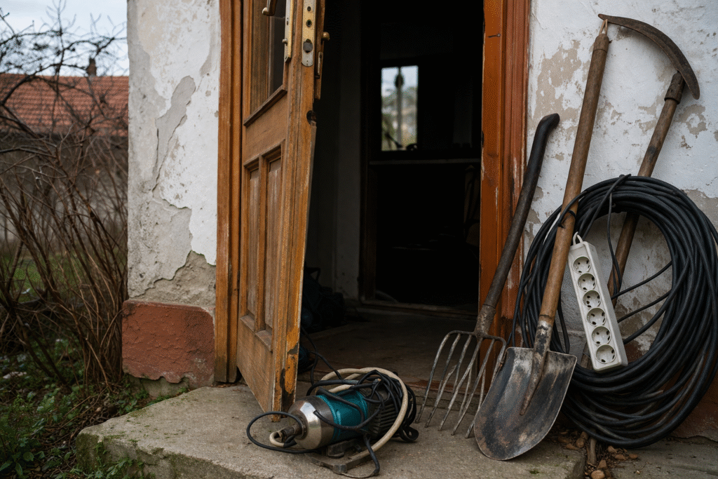 По първоначални данни, обект на кражбата са лопата, вила, коса, разклонител, бибо помпа и топ с 30 метра трижилен кабел.