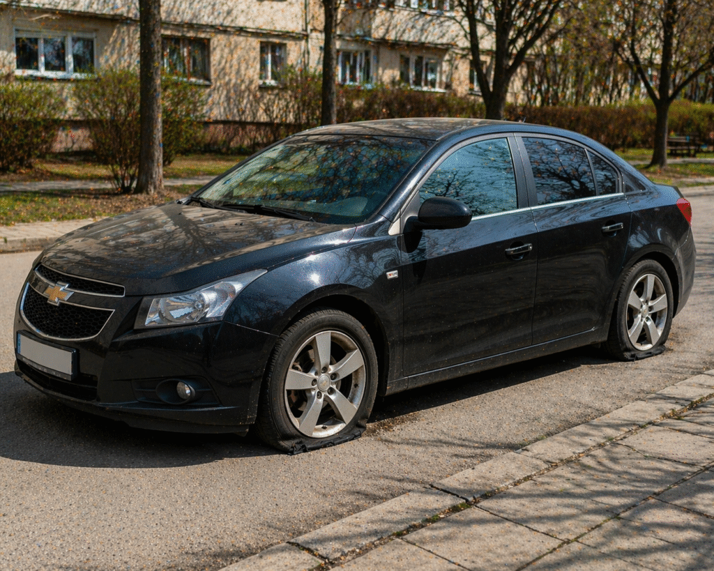 По данни на потърпевшия, в периода между 19:00 часа на 15.04.2026 г. и 09:00 часа на 16.04.2026 г. са били срязани четири автомобилни гуми на лекия му автомобил „Шевролет Круз“ с монтанска регистрация.