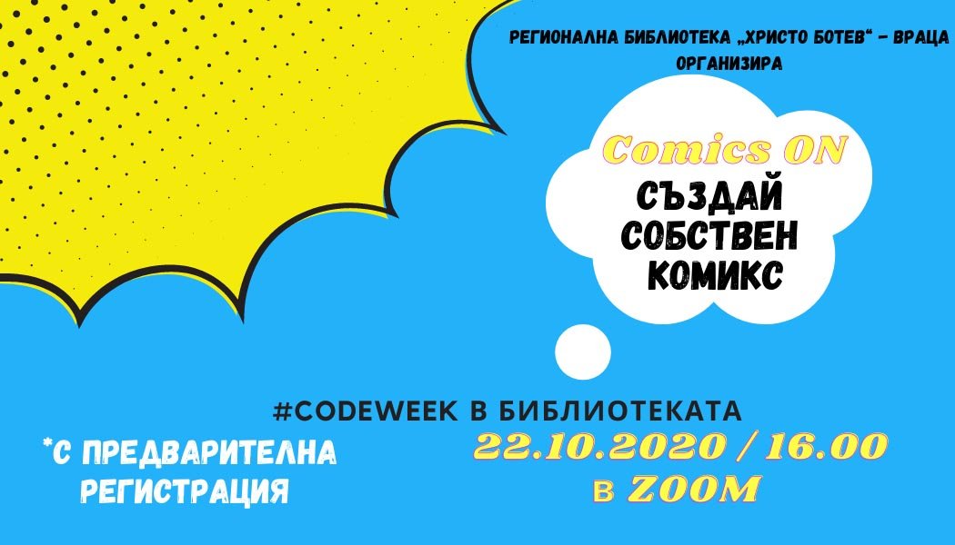 Регионална библиотека „Христо Ботев” – Враца организира онлайн уъркшоп за създаване на собствен комикс в рамките на Eвропейската седмица на програмирането 2020.
