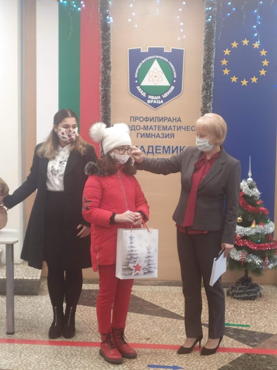 В навечерието на един от най-светлите празници – Рождество Христово Директорът на ППМГ връчи наградите на победителите в Коледния конкурс, организиран от Ученическия съвет. Всеки един от възпитаниците на гимназията  имаше възможността да вземе участие, като представи своя творба в една от трите категории – за фотоколаж с коледни мотиви, за календар и за украса на предпазна маска. Завладени от Коледния дух, учениците представиха наистина прекрасни творби и по този начин показаха, че няма сила, която може да помрачи празника. Въпреки сложната ситуация в момента, въпреки, че в ежедневието си учениците са разделени и комуникират в електронна среда, за пореден път те доказаха, че една добра идея може да ги обедини. Чрез своите колажи, календари, маски, те показват красивата страна на живота и на предстоящите празници,  пречупени през техния поглед.