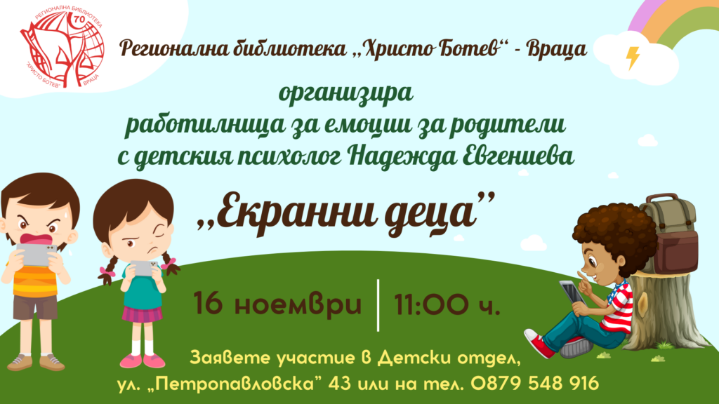 Очакваме ви на 16 ноември от 11:00 ч. в Детски отдел на Регионална библиотека „Христо Ботев“, ул. „Петропавловска“ 43.