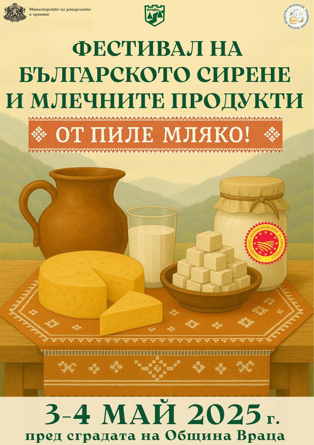 Заповядайте на Първия фестивал на Българското сирене и млечните продукти – 3 и 4 май в сърцето на Северозапада – Враца!