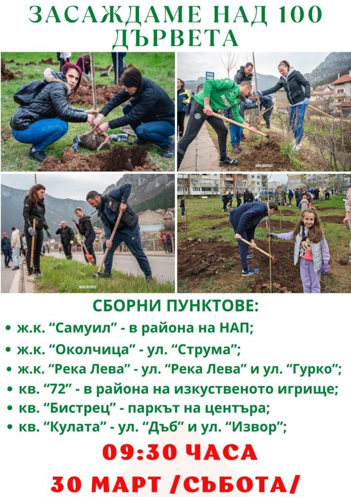 В шест района ще бъдат засадени над 100 дървета от вида – розов кестен, магнолия, червенолистна слива, албиция, офика и бадем.