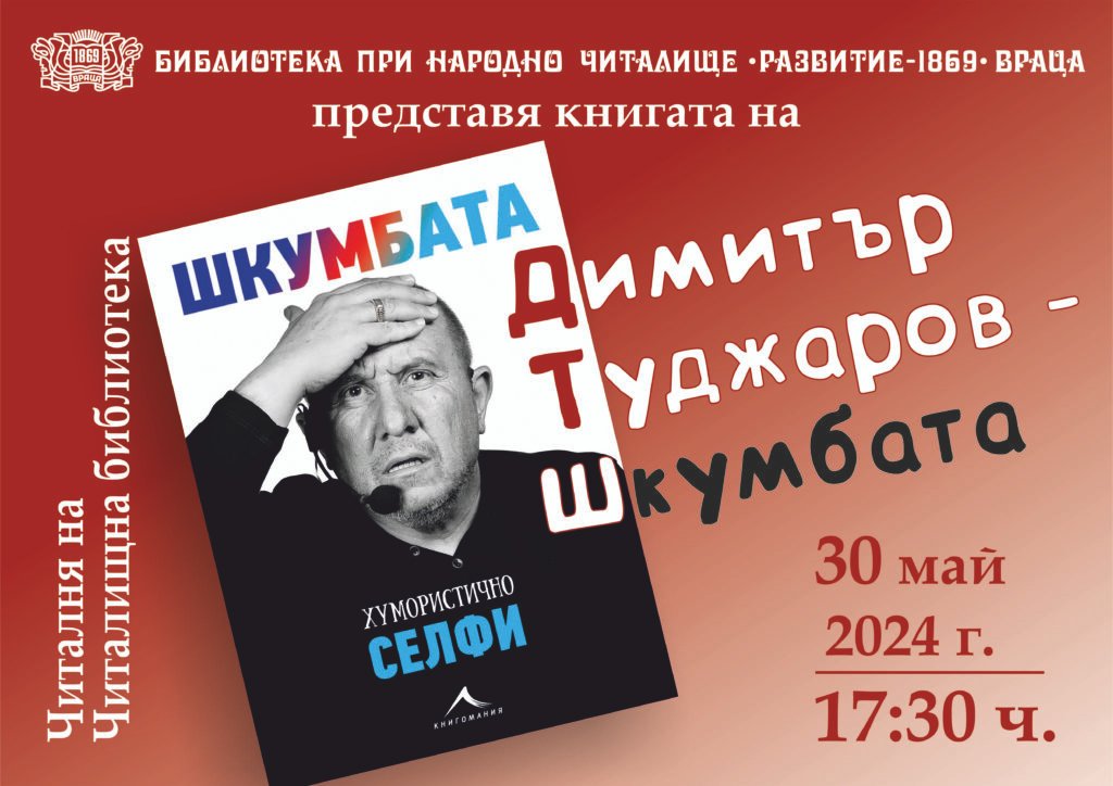 Библиотеката при НЧ „Развитие – 1869“ гр. Враца представя Димитър Туджаров – Шкумбата с автобиографичната книга „Хумористично селфи“.