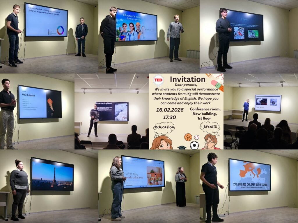 В рамките на програмата деветокласниците представиха авторски презентации и видеоклипове, създадени с помощта на съвременни AI инструменти. Форматът, вдъхновен от TED беседите, даде възможност на учениците да демонстрират отлични умения за публично говорене на английски език, увереност и способност да структурират и защитават идеи.