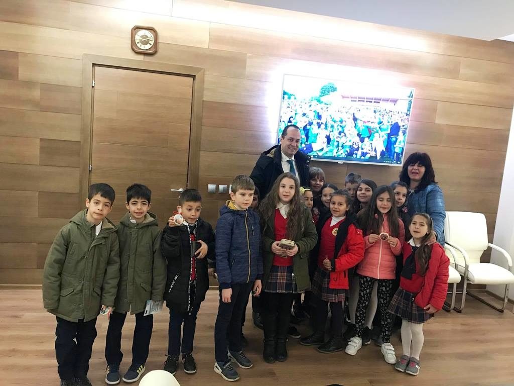 Кметът Калин Каменов посрещна в деня на пролетта възпитаниците от II „в“ клас на Начално училище „Св. Софроний Врачански“.