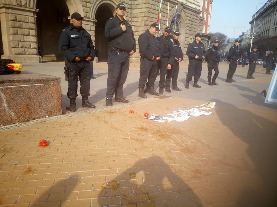 Според Нова телевизия в протеста са се включили около 50 души. Част от тях хвърляли яйца и домати към сградата на Министерски съвет, тогава се намесили униформените.