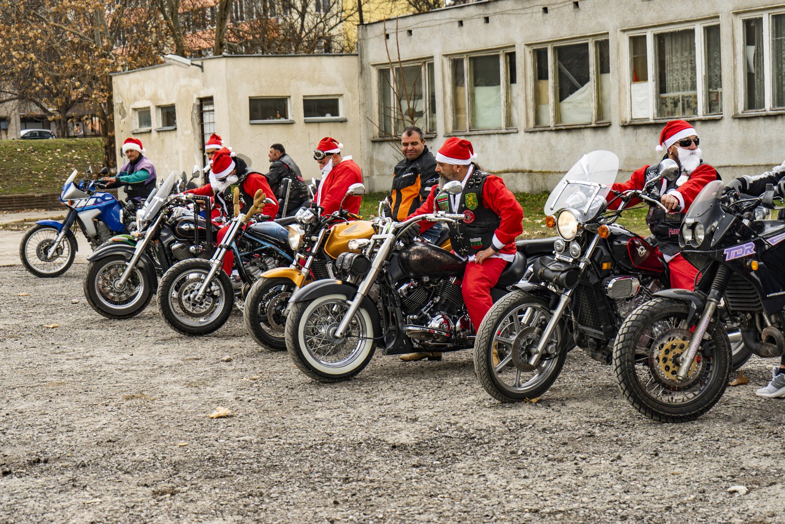 Пъстрото шествие от мотористи направи почетна обиколка на града, след което се отправи към специализираната социална институция, където се състоя коледно тържество.