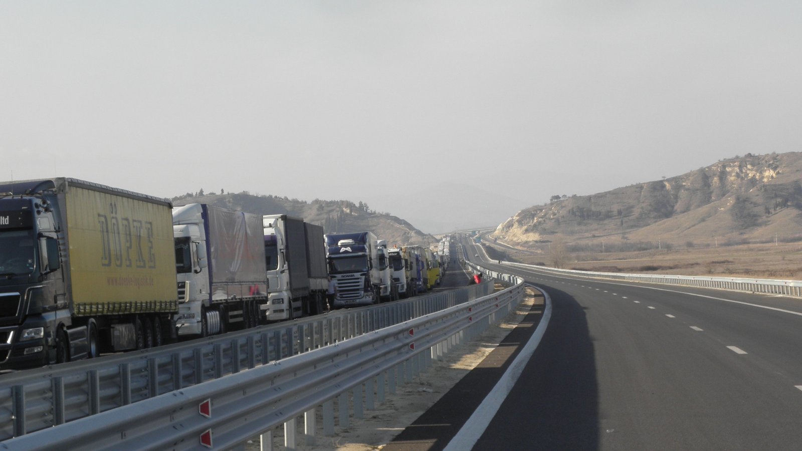 Чакащите преди границата камиони са над сто. Шофьорите недоволстват, защото са принудени да стоят в камионите, подредени в аварийната лента на автомагистрала „Струма“, съобщиха от БНР.