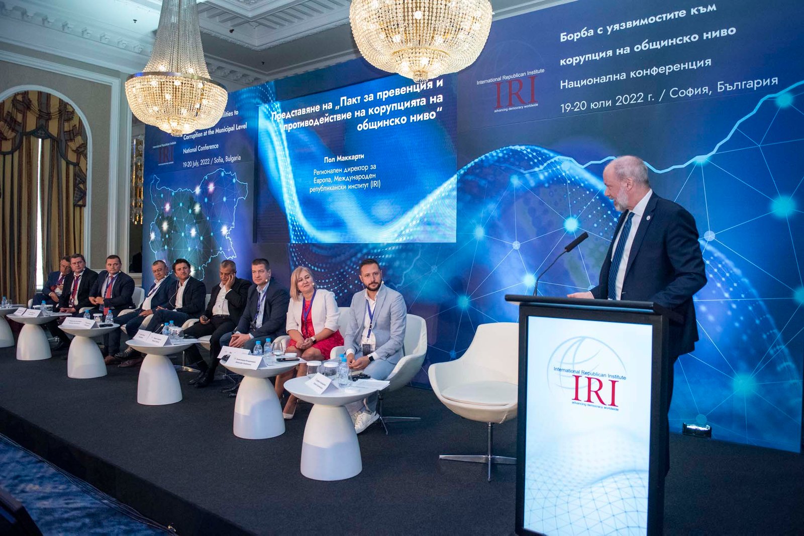 Във встъпителните си думи регионалният директор на Международния републикански институтза Европа Пол Маккарти заяви: „IRI вярва, че борбата срещу корупцията е и борба за демокрацията“. Маккарти подчерта, че чрез тази национална конференция IRI се стреми да вдъхнови общинските лидери и неправителствения сектор с добри практики и с разбирането, че увеличаването на прозрачността, почтеността и участието на гражданите е споделено предизвикателство.