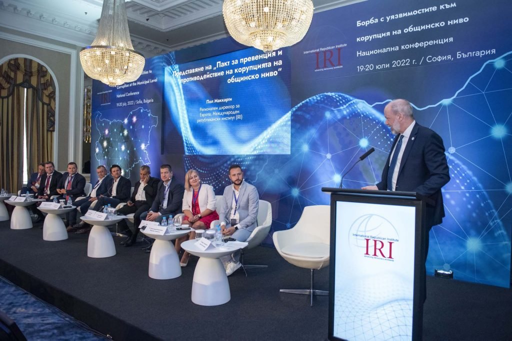 Кметовете на десет български общини подписаха антикорупционен пакт на националната конференция на Международния републикански институт (IRI) „Борба с уязвимостите към корупция на общинско ниво“, която се проведе на 19-20 юли в гр. София. С този документ кметовете се ангажираха да работят за по-ефективна прозрачност, откритост, достъпност, ангажираност на гражданите, както и за ефективно използване на механизмите и структурите за превенция и противодействие на корупцията на общинско ниво.