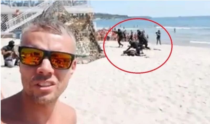 Той показва как командосите излизат на брега и започват да стрелят, а след това влизат към вътрешността на плажната ивица. Ситуацията е била толкова нелепа, че на видеото се вижда как дете на 5-6 години вдига ръце пред баретите. На заден плане се вижда военния флот, участвал в учението.