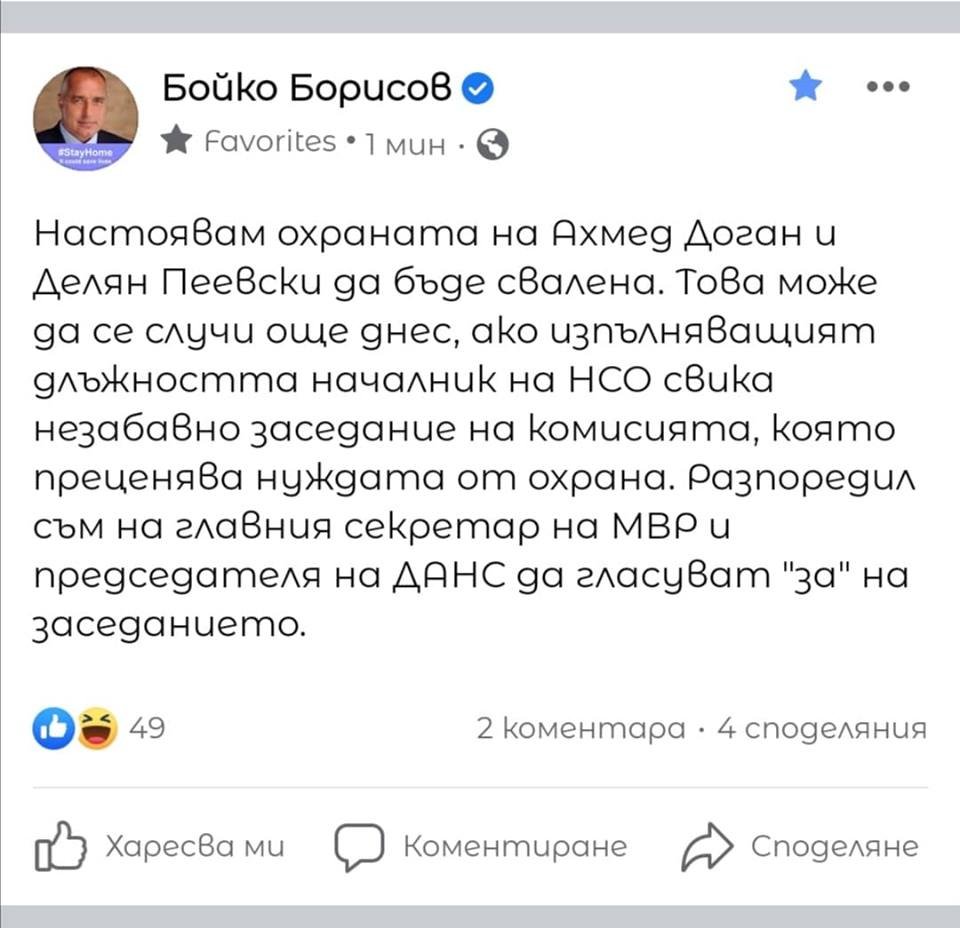 В същото време Борисов обяви решението си и в своята „Фейсбук“ страница.