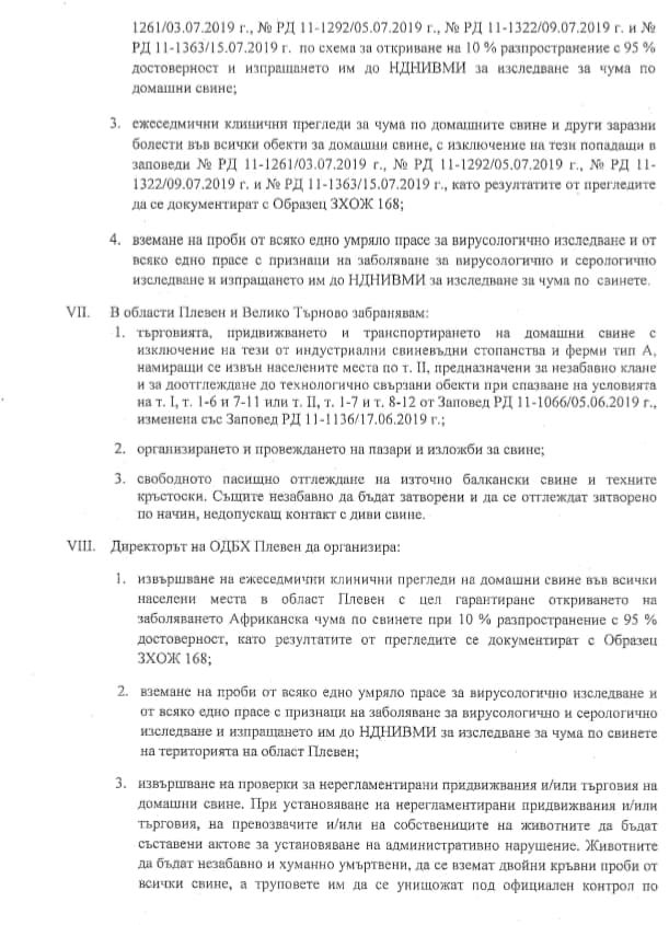 По този повод е издадена заповед за определяне на 3-километрова предпазна зона около огнищетата и наблюдавана зона от 10 км. около огнищета.