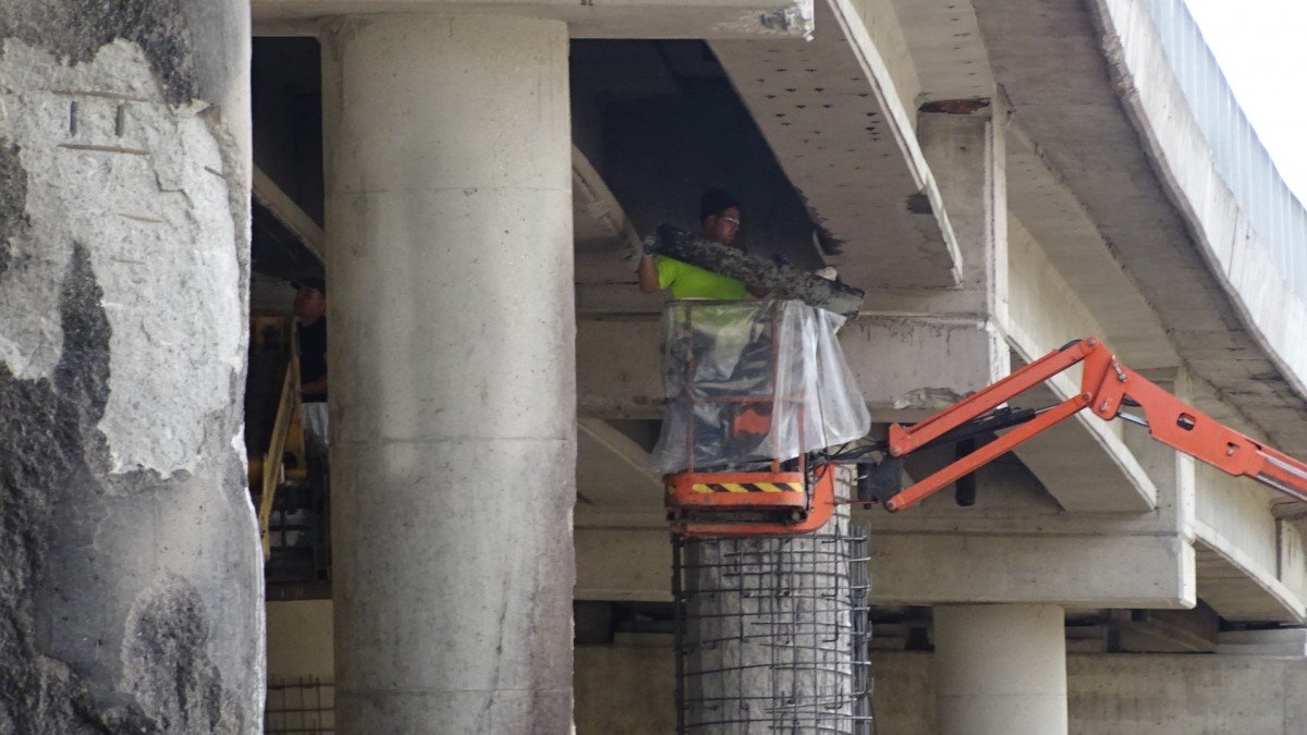 На платното в посока Кулата, затворено след пожара, се ремонтира дилатационната фуга, както и пострадалите колони и греди.