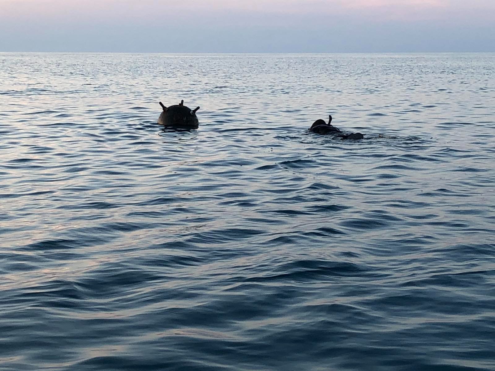 Унищожиха мина тип „Ям“, приведена в бойно положение, плаваща източно от устието на Камчия