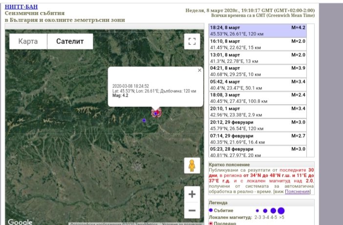 Земетресение с магнитуд 4.2 по Рихтер е регистрирано в района на Вранча. Трусът е отчетен в 20:24 ч. По-рано, към 18:10 ч, е регистриран друг трус в района с магнитуд 2.0 по Рихтер.