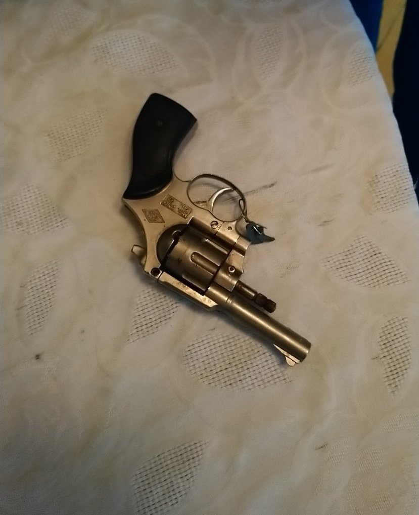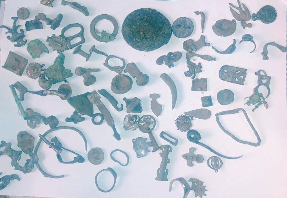 револвер, без фабричен номер, газов пистолет без предпазна муфа, 2 пушки, 104 боеприпаса, устройство за произвеждане на изстрели, наподобяващо химикалка, металотърсач и 278 предмета – монети, пръстени и др, за които се предполага, че са културно-исторически ценности.