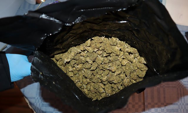 На следващия ден, при условията на неотложност, разследващите извършили претърсване в обитаван от мъжа апартамент. В жилището полицаите открили електронна везна и два плика със зелена суха листна маса с общо тегло 1080 грама. При направения тест веществото отново реагирало на канабис.