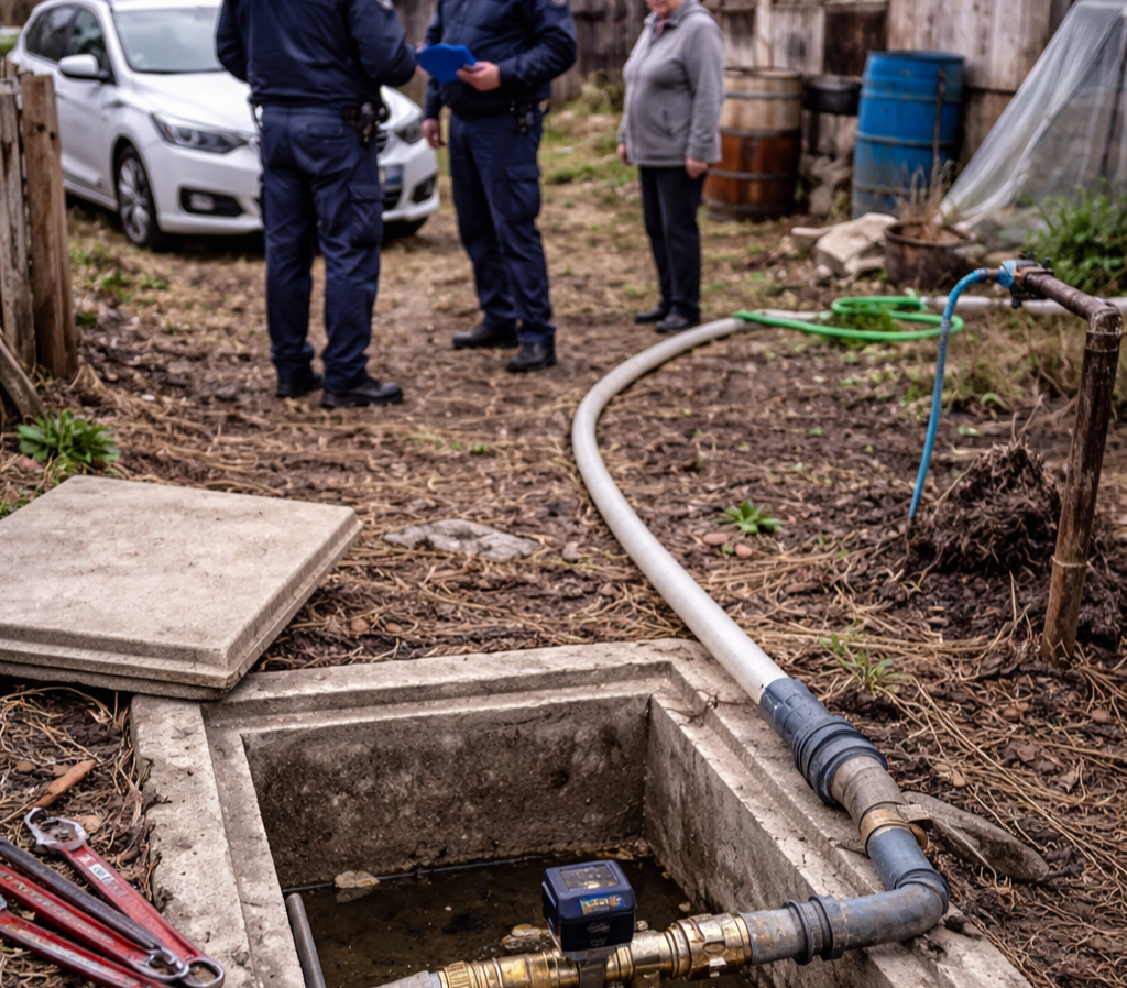 Сигналът е подаден на 19 февруари 2026 г. чрез телефон 112 от служители на водоснабдителното дружество в областта. При извършената проверка те констатирали промяна в схемата на свързване, която водела до непълно отчитане на използваната вода.