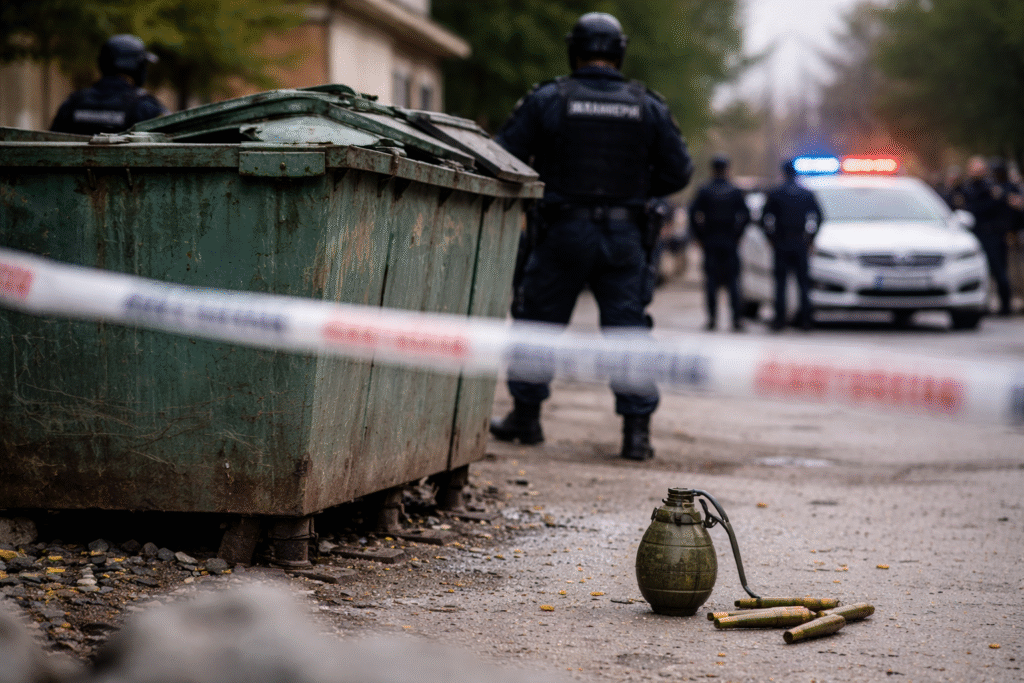 Необичайна находка предизвика намесата на полиция и специализирани служби в Монтана, след като ръчна граната беше открита до контейнери за отпадъци в района на бензиностанция на улица „Веренишка“.
