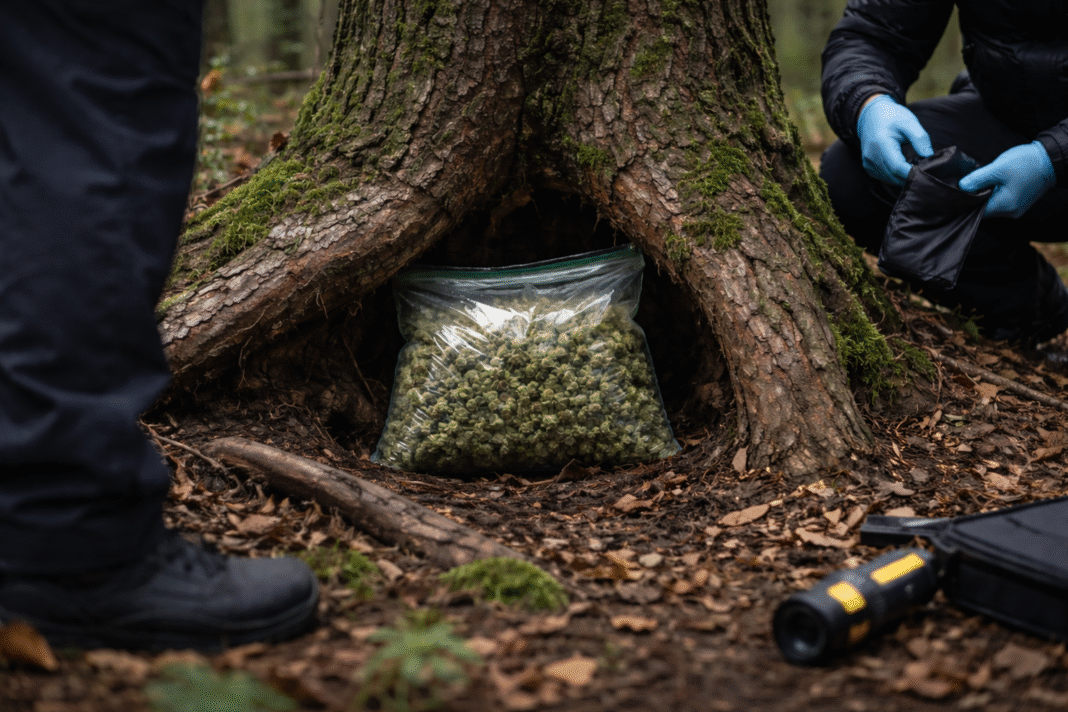 Акцията е проведена на 9 март 2026 година. При извършени обходи в района полицаите са намерили плик с около 600 грама канабис, скрит в кореновата система на дърво.