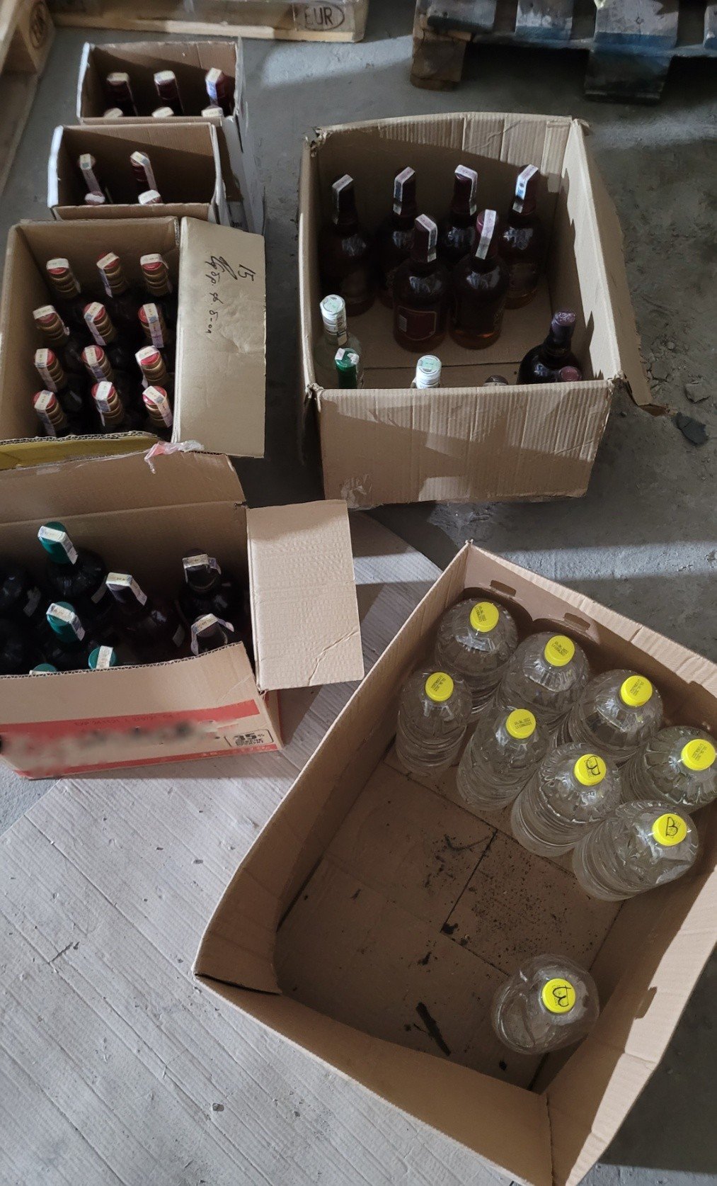 На адреса митническите служители откриват 280 литра спирт и над 50 литра нелегален алкохол. Високоалкохолните напитки били разпределени в 35 стъклени бутилки уиски от популярни марки с поставен български бандерол, който е видимо неистински (с преснимана холограмна лента). Намерени са още 10 бутилки, облепени с бандерол с изтекъл срок на валидност и други три без бандерол.