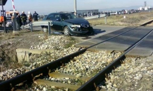 Влак отнесе джип на жп прелез, по чудо няма пострадали