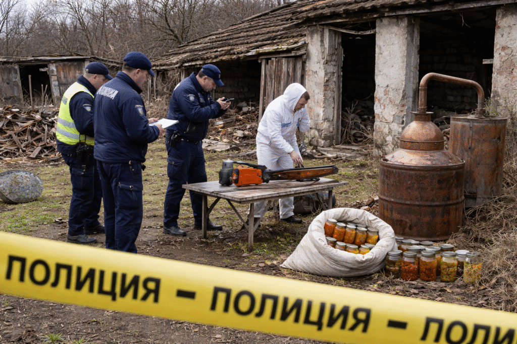 Сигналът за престъплението е подаден на 8 февруари в 11:43 часа. По първоначални данни обект на посегателството са станали законно притежавана ловна пушка, меден казан за варене на ракия, акумулаторна резачка със зарядно устройство и батерия, както и буркани с компоти и зимнина.