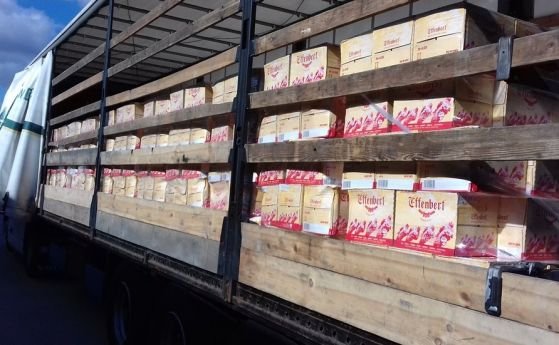 След свалянето на осем палета от задната част на ремаркето и след повдигане на преградната стена митническите служители откриват акцизни стоки – бира от три български марки с общо количество 2406 литра.