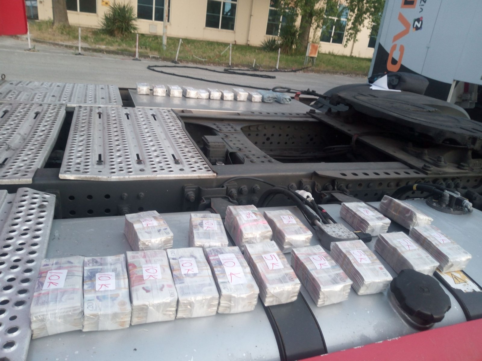 В хода на инспекцията митническите служители открили 17 пакета, обвити в черен найлон, укрити във фабрично изградени кухини в задната стена на влекача. Те съдържали голямо количество британски паунди в купюри по 50, 20, 10 и 5.