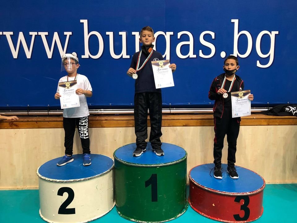 Мартин Цветков, който стана държавен шампион при деца до 33 кг, 7-9 годишни. Това е четвърти златен медал за него през 2020 г.