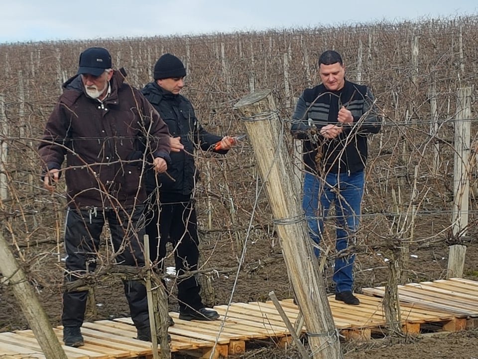 С наричания за здраве и берекет, кметът на град Оряхово – Росен Добрев и двамата управители на „Лозко“ ЕООД – Кирил Матеев и Радослав Николов зарязаха лозята.
