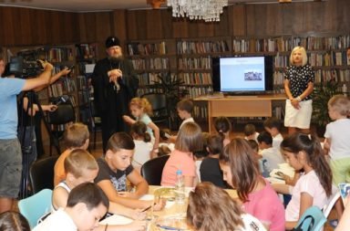 Кои са основните елементи, които трябва да присъстват при изобразяването на светец, научиха участниците във второто будителско ателие, посветено на Св. Софроний Врачански. Специален гост на работилницата в Регионална библиотека „Христо Ботев” – Враца беше Негово Високопреосвещенство Врачанският митрополит Григорий, който отговори на въпросите на всички деца, свързани с организирания от Врачанска митрополия конкурс за … Continue reading Врачанският митрополит Григорий се срещна с деца във втората будителска работилница в библиотеката