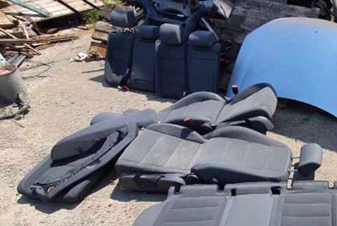 При направения оглед е констатирано, че на паркинга на който се съхраняват автомобилите има наличие на смесени битови отпадъци примесени с части от автомобили. Същите са трупани от години от неизвестни извършители и от собственика на имота са прибутани с техника в посока към боровата гора. Имотът, в който са налични отпадъци, включително части от автомобили е собственост на проверяваното лице.