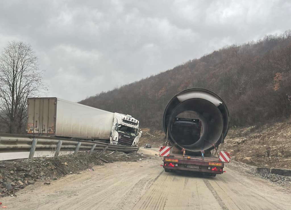 Движението от София към Враца между Ребърково и Лютидол е напълно блокирано от аварирал ТИР