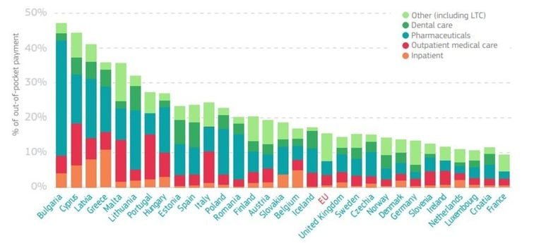 Най-впечатляващото първенство по една от темите в него отново заема България – делът на частните доплащания у нас е най-висок в целия ЕС като през 2017 г. е достигнал 46.6 % от всички плащания, който в сравнителен план е почти три пъти по-висок от СРЕДНИЯ за ЕС.