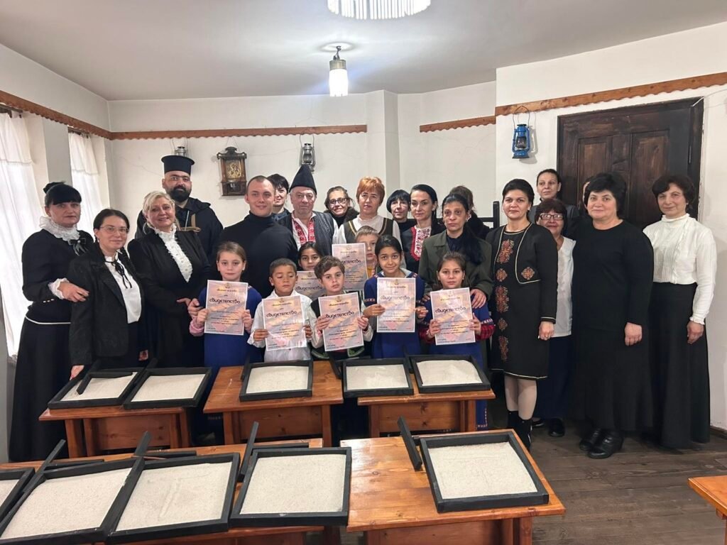 Облечени в автентични дрехи от периода и седнали на дървени чинове, децата разбраха как са се учили техните предци. Вместо тетрадки, те използваха дървени сандъчета, пълни с пясък, върху които писаха първите си „букви“, точно както са правели учениците отпреди два века.