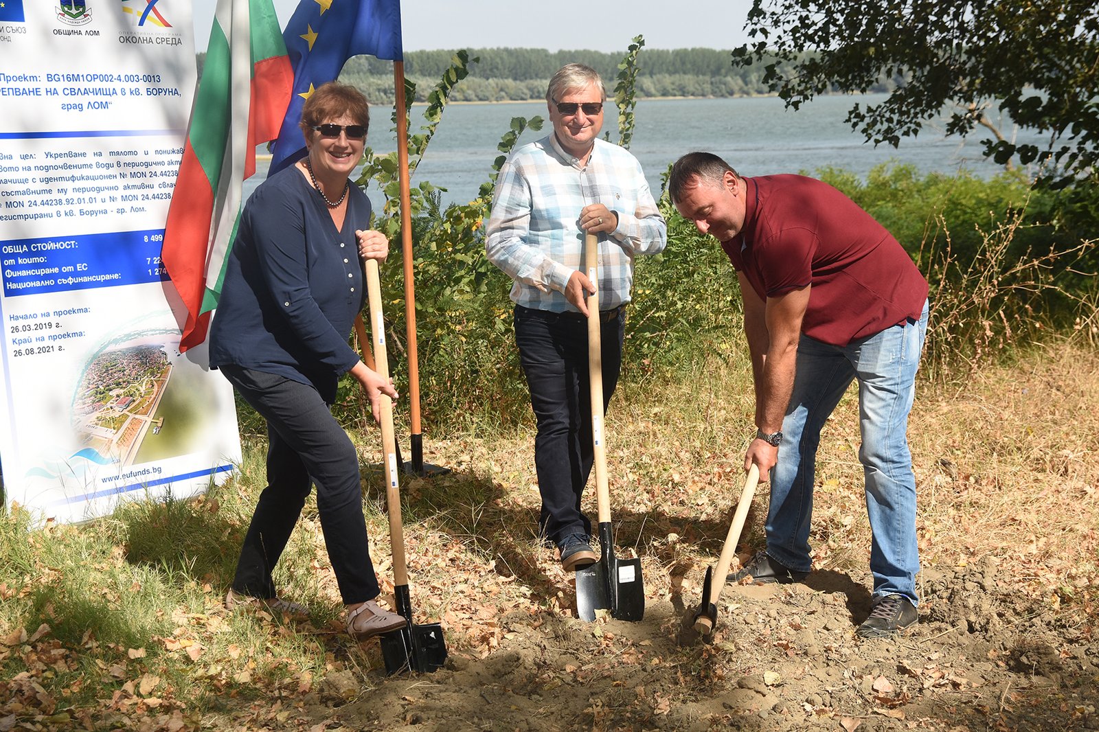 С първа копка бе даден старт на строителството на подпорна стена и дренажна система в свлачищния квартал Боруна. На церемонията присъстваха зам.-кметът на Община Лом Гинка Иванова, която е ръководител на проекта, представители на фирмата-изпълнител, проектантския екип, строителния надзор, граждани и журналисти.