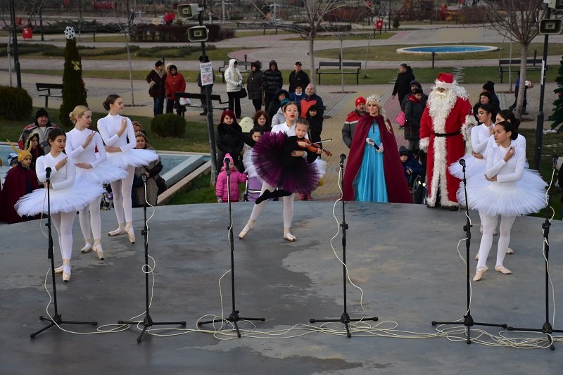С тържество, най-малките жители на комплекс „Дъбника“ посрещнаха Дядо Коледа. Церемонията по пристигането на белобрадия старец се проведе в парка, който тази година е украсен с хиляди светлини по повод предстоящите коледни и новогодишни празници.