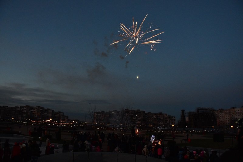 След това децата, заедно с Дядо Коледа, отброиха последните секунди до запалване светлините на коледната елха, която заблестя празнично. Тържеството завърши с красива многоцветна заря.