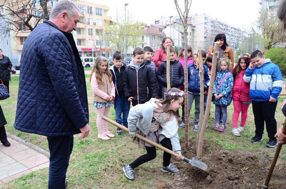 „Избрахме това място, защото тук има и детска площадка, и кътове за отдих. Сигурен съм, че ще запомните този ден и не след дълго време ще наблюдавате и ще се радвате на хубавите дръвчета, които сме засадили заедно“ – каза Ценков.