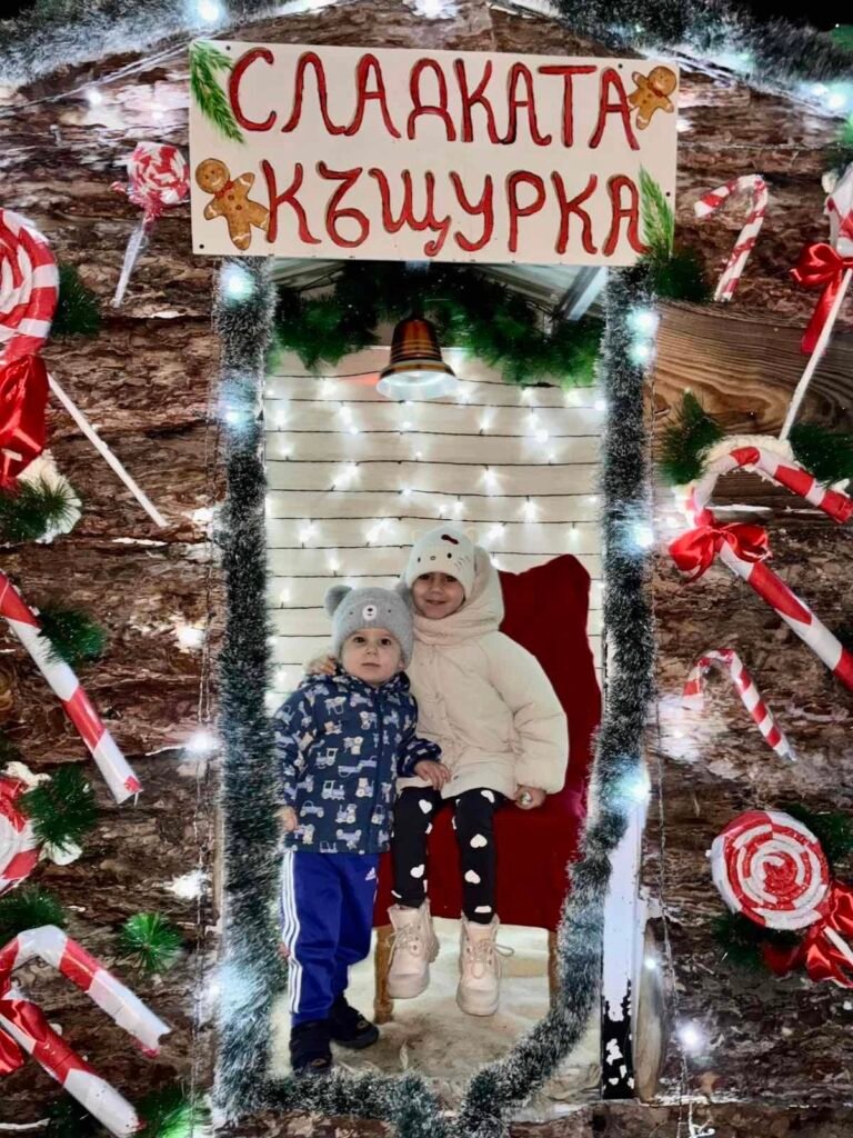 Фотокътът „Сладката къщурка“ се превърна в притегателно място за малки и големи – пространство за снимки, смях и създаване на спомени. За децата бяха подготвени лакомства, топъл шоколад и чай, а за възрастните – ароматно греяно вино, което внесе уют в студената вечер.