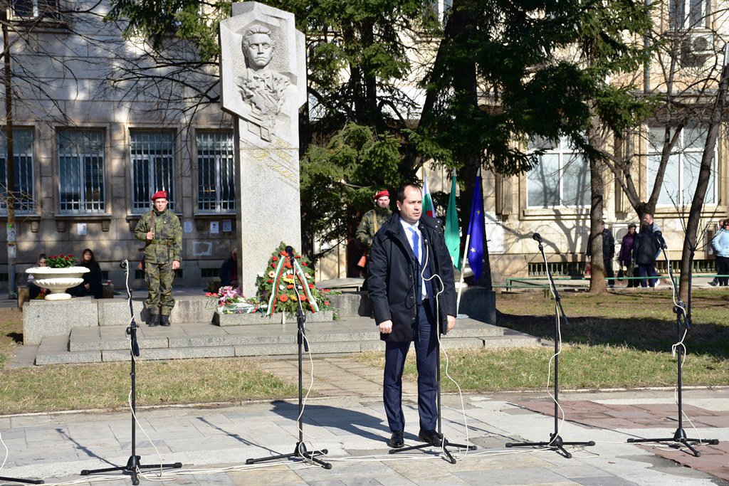 Гордейте се, че сте българи всеки ден и почитайте паметта на нашите предци не само в деня на тяхната гибел или рождение. Само тогава ще бъдем достойни продължители на делото Апостола“ – каза в словото си кметът Калин Каменов по повод годишнината от гибелта на Васил Левски и призова за минута мълчание в памет на героя.