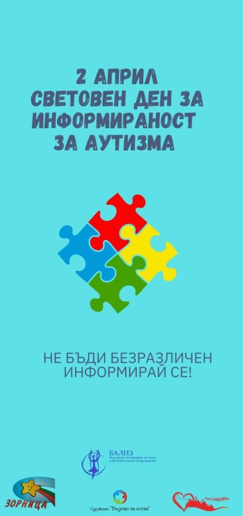 Включваме се в кампанията “Приятели на деца и младежи с аутизъм”, която се организира от БАЛИЗ(Българска асоциация за лица с интелектуални затруднения), СНЦОПДЛИЗ ”Зорница” , Сдружение”Бъдеще за всеки”- гр.Монтана, с подкрепата на Сдружение”Кауза Северозапад”.