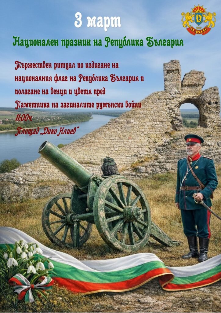 По повод Националния празник на Република България – 3 март, ще се състои официална церемония по издигане на националния флаг и поднасяне на венци и цветя в памет на загиналите ружински воини.
