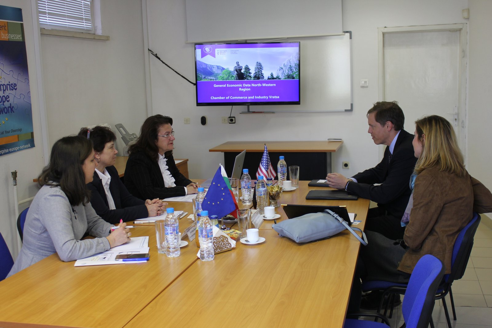 Представителите на Посолството на САЩ и г-жа Илиана Филипова, заместник председател и изпълнителен директор на ТПП-Враца обсъдиха предприетите мерки, свързани с инвестиции, насърчаване на предприемачество, младежка заетост и акцента върху процесите на дигитализация и насърчаване на иновациите и разработване на нови технологии в региона.