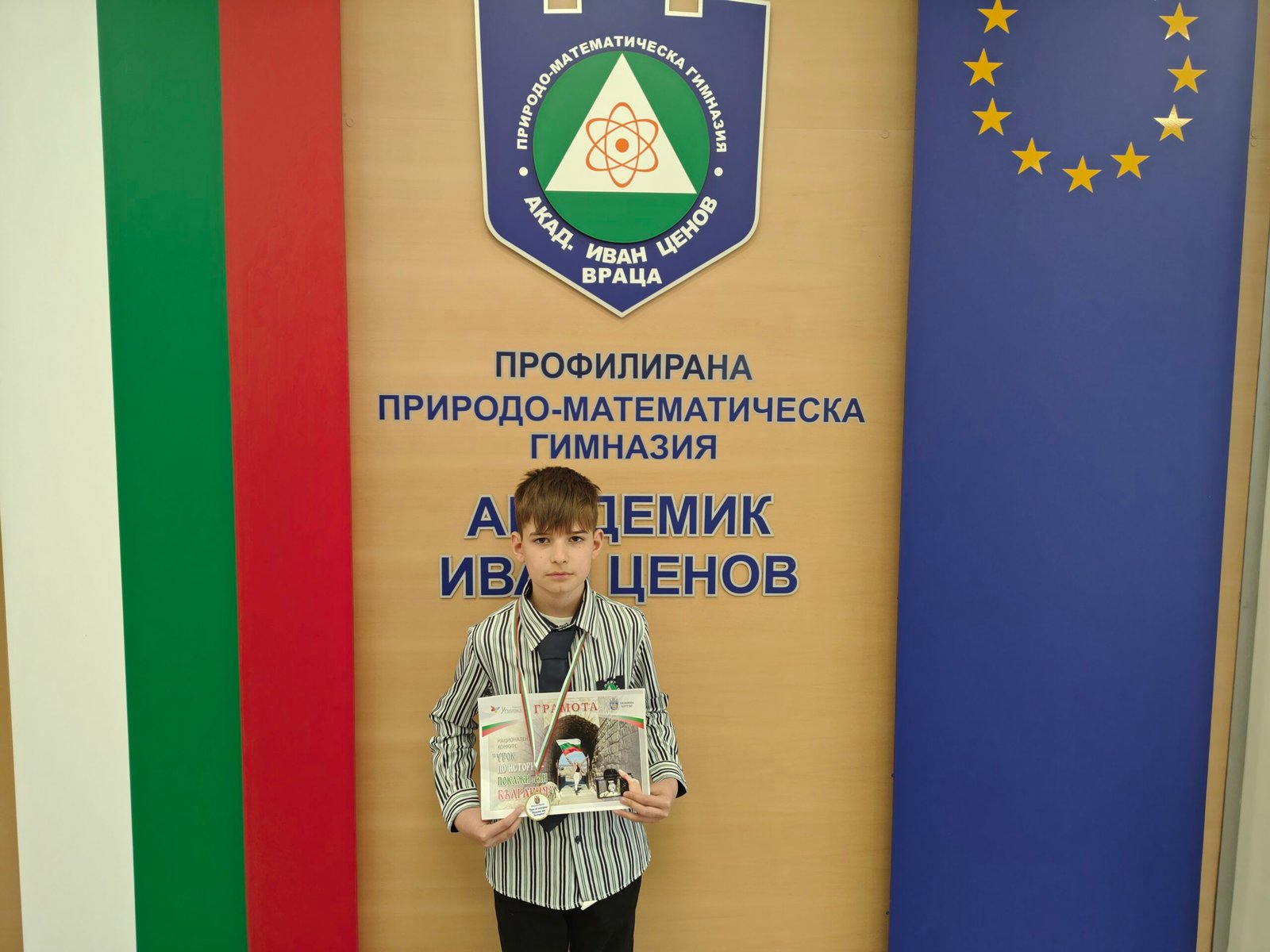 Денислав Мирославов Иванов от VI а клас на Профилираната природо-математическа гимназия във Враца беше класиран на първо място в националния конкурс „Урок по история – Покажи ми България“.